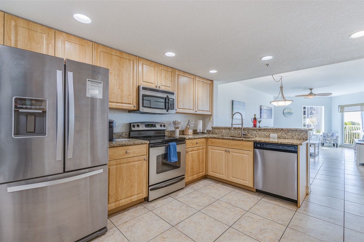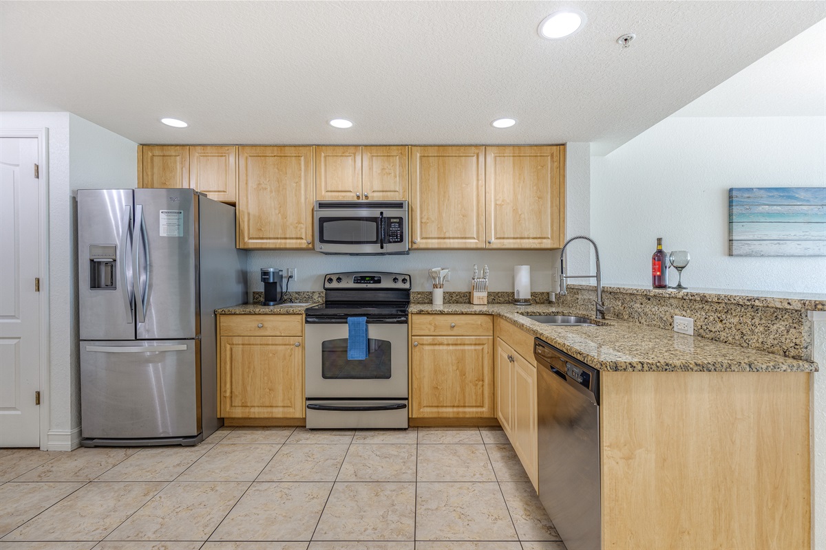 🍽 Fully Equipped Kitchen – Cook up delicious meals with granite countertops, stainless steel appliances, a Keurig, blender, and toaster.
