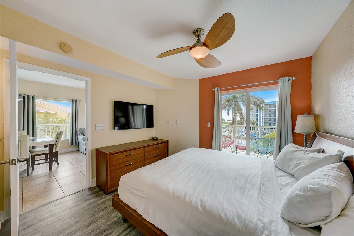🛏 Peaceful & Private Sleeping Arrangements – The main bedroom features a private entrance to the balcony, perfect for a quiet retreat after a day in the sun.