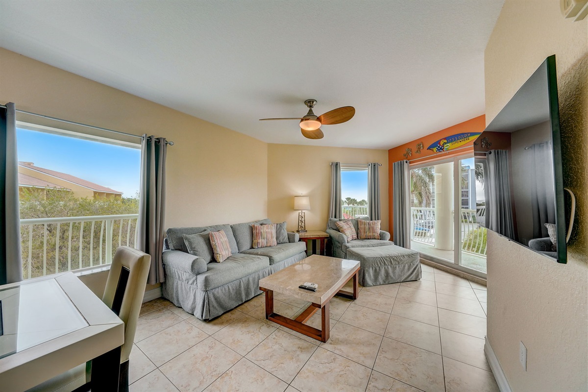 🛋 Stylish & Comfortable Living – This updated, coastal-chic condo is designed for relaxation, with elegant tile-style floors, ceiling fans in each bedroom, and central air conditioning to keep you cool.